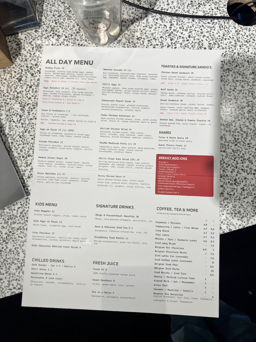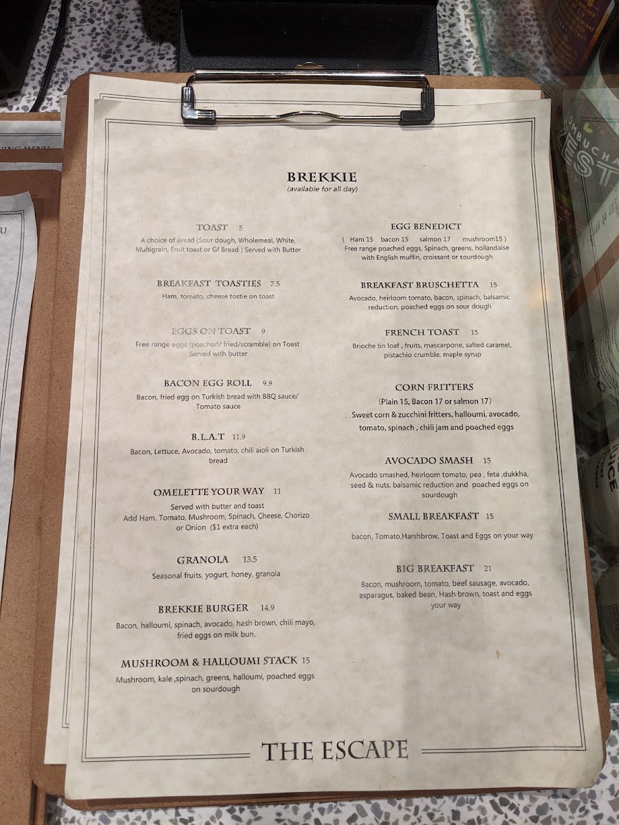 The Escape Cafe Merrylands offers a fresh, vibrant menu that perfectly balances classic cafe staples with bold, modern flavors. Begin your day with their range of brekkie options, such as free-range eggs on toast or the satisfying bacon egg roll, all served with quality ingredients and thoughtful detail. Their lunch and brunch selections elevate familiar dishes—like the Aussie Wagyu Burger with caramelised onion and chipotle aioli, or the grilled lamb gyros with fresh tzatziki and sumac—that showcase a commitment to hearty, flavorful meals. The kid's menu adds family-friendly choices ensuring everyone leaves content. Guests consistently praise the cafe for its fresh, well-presented dishes and standout coffee, creating a welcoming atmosphere that complements the vibrant Stockland Merrylands setting. Whether you’re after a relaxing brunch or a quick catch-up brew, The Escape Cafe strikes the right balance between quality, taste, and friendly service, making it a delightful culinary escape in the heart of Merrylands.